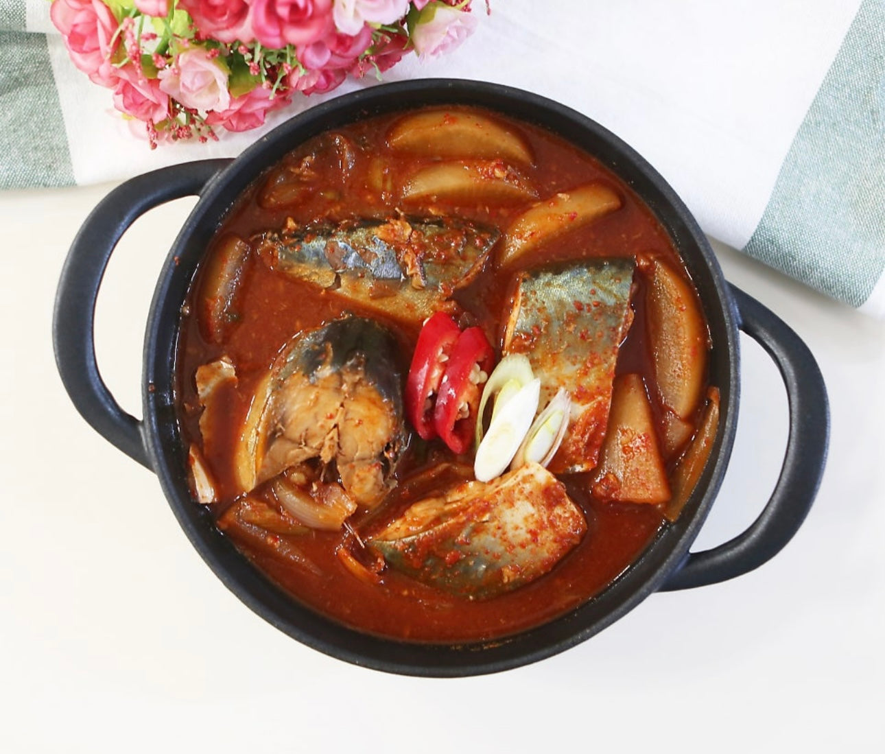 불포화 지방 함량이 풍부해서 고소한 풍미가 진한 고등어와 시원한 풍미가 매력적인 무와 달달한 감자를 조합한 고등어 무조림 입니다.