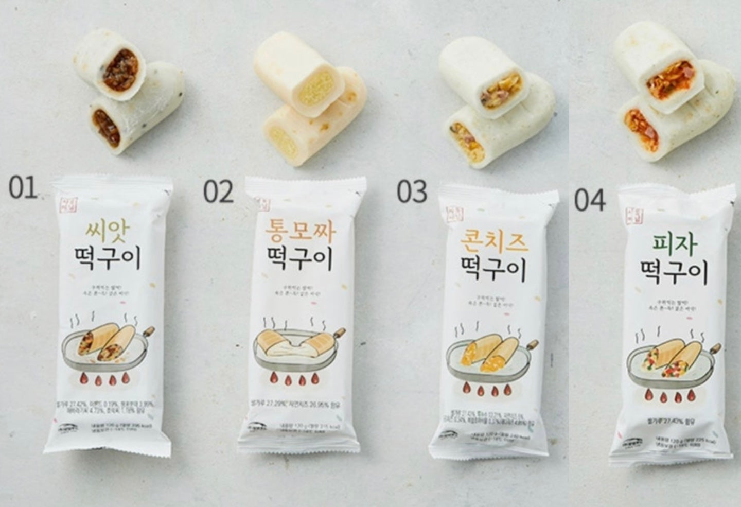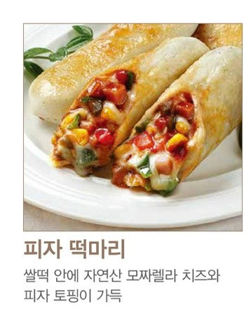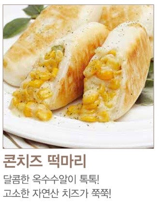 콘치즈, 씨앗, 통모짜, 피자 떡구이 입니다.