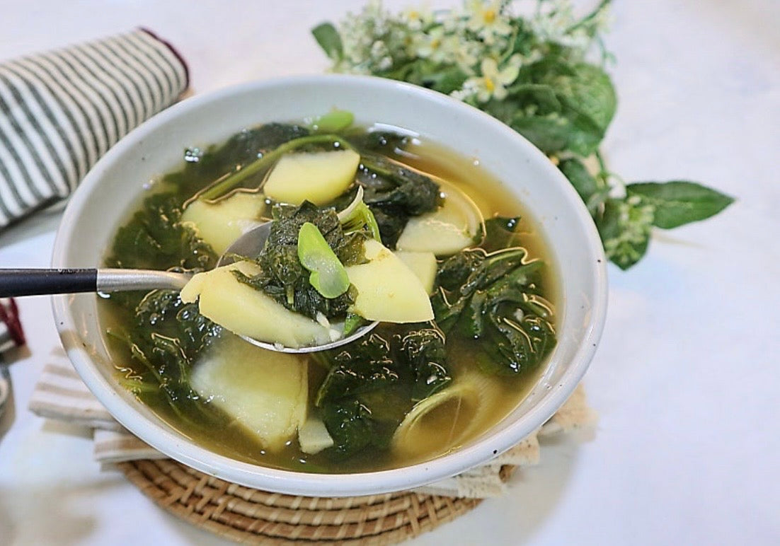 신선한 아욱과 쫄깃한 우렁이를 구수한 된장으로 끓여낸 된장국 입니다. 아욱의 부드러운 식감과 우렁이의 깊은 감칠맛이 어우러져 담백하면서도 진한 맛이 특징입니다.