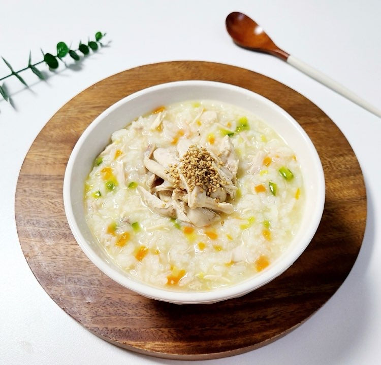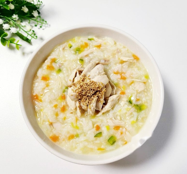 닭야채죽은 닭고기와 다양한 야채를 함께 끓인 죽으로, 여름철 보양식이나 이유식으로도 인기 있는 메뉴입니다. 부드럽고 고소해서 먹기도 좋아요.